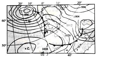 3、单选题 图为某日某时刻欧洲西部部分地区海平面等压线分布图(单位:百帕)。读图回答下列小题。