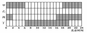 2、单选题 读所给“甲、乙、丙、丁四地12月某日昼夜分布示意图(阴影表示黑夜)”。据此完成问题。