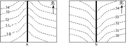 【小题1】图为某地两条河流两侧的潜水位等值线示意图,可反映河流与潜水补给关系的一般情况。图中数字表示潜水位(潜水面海拔,单位:米)。读图判断正确的选项是( )