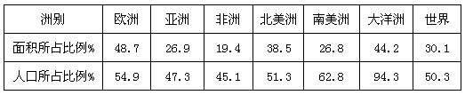 5、单选题 下表是各大洲距海岸200km范围内的面积和人口比重表,完成下题。