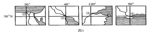 2、单选题 读30°N线附近四个地区简图 ,回答问题。