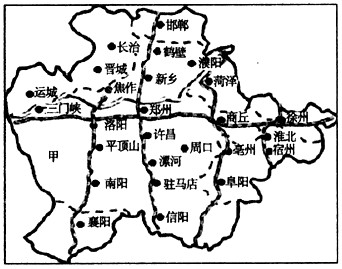 4、综合题  2011年1月26日国务院下发《全国主体功能区规划》,将中原经济区纳入国家层面的重点开发区域。规划中的中原经济区以河南为主体,包括河南全部和晋东南、冀南、皖西北、鲁西南等周边地区。读中原经济区规划图,回答下列问题。