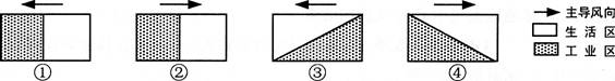 本题解析:本题考查城市合理规划。工业区应布局于盛行风向的下风向,生活区应布局于主导风向的上风向,环境优美。
