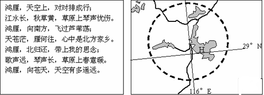 1.若游人在图中H湖观赏到大量的鸿雁群,则最可能是在2.根据图文信息,观赏鸿雁要