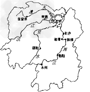2、综合题 湖南省位于我国长江以南地区,图为湖南省简图,读图回答下列问题。