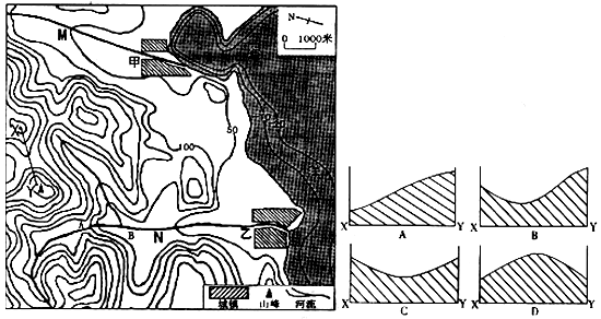 £¨1£©ÓÒͼÖУ¬ÕýÈ··´Ó³×óÍ¼ÑØX¡ªYµÄµØÐÎÆÊÃæµÄÊÇ______¡££¨Ñ¡Ôñ£©£¨2·Ö£©