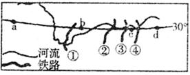 3、单选题 读长江干流及南北向铁路干线示意图,回答问题。