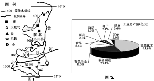 材料一:图1“陕西省简图”和图2“2010年陕西省工业生产总产值占比图”