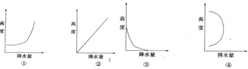 小题3:假如一座 3 000 多米的高山,不受其他因素影响,下列哪幅图最能表示降水量与高度的关系