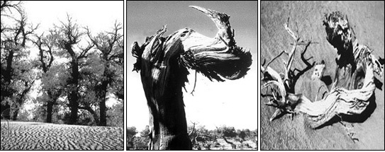 小题1:由“对温度大幅度变化的适应能力很强” “倒一千年不朽”,可知该河流流域干旱,且温度大幅度变化。另外,图中还可以看到沙漠。
