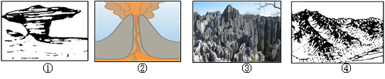 1.图示所列景观由内力作用形成的是2.关于图中各种地貌的说法,正确的是