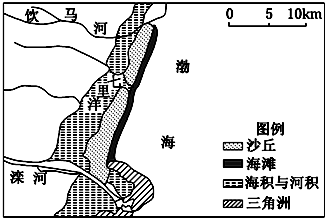 4、单选题 读我国渤海某海岸地表物质分布示意图,回答问题。