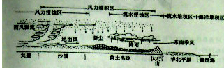 2、单选题 图是黄土高原外力作用示意图,读图完成下列各题。