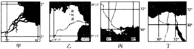 5、单选题 下图为世界四条著名大河入海口附近示意图。读图完成1~2题。