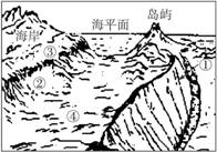 (1)图中①②③④所示的海底地形分别是(? )