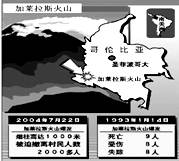 材料一?人民网2011年1月4日电 据来自波哥大的消息,哥伦比亚南部的加莱拉斯火山(1.2°N;77.3°W)于星期六当地时间下午7点43分开始喷发,当局宣布那里处于红色警戒状态,已疏散8000多居民。加莱拉斯火山位于南部纳里尼奥省,是哥伦比亚较为活跃的火山之一,去年曾经喷发10?次。
