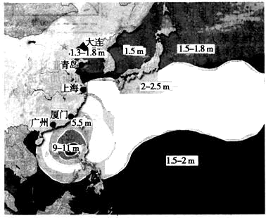 1、综合题 读下面的海浪警报示意图,回答问题。