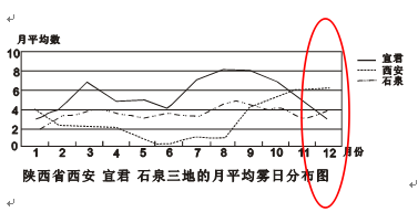 小题1:陕西省12月份雾日最多的地方是