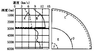 参考答案:(1)莫霍面 古登堡面 (2)消失 速度突然下降