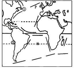 (1)在图中画出北半球中低纬度海区的大洋环流方向。