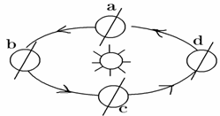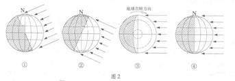1、单选题 下列日照图中,箭头表示太阳光线),能正确反映春分日日照状况的是(?)