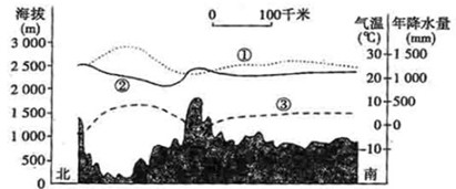 4、单选题  下图为我国某区域地形剖面及相关气候资料图,读图完成20-22题。
