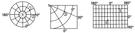 5、单选题  读图“四幅经纬网示意图”,完成题。