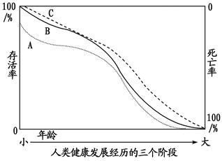 小题1:从A阶段到C阶段人口的存活率上升,死亡率下降,说明健康水平在提高。