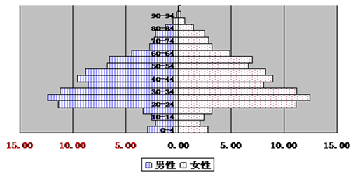 5、单选题 读“2010年北京市常住人口年龄金字塔”图,依据图像及所学知识,完成下列问题。关于北京市人口的叙述正确的是