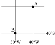 2、单选题 下图为经纬网图,已知图中相邻两条纬线间的纬度间隔为10°读图,回答下列问题。