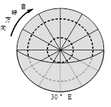 (1)将侧视图中的光照图转绘到俯视图中。(画出晨昏线,并用