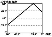 (3)用折线在右图中画出该日北半球各地正午太阳高度的分布规律。(2分)