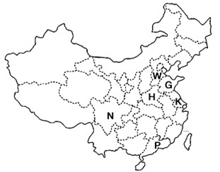 小题3:材料提到的五个省中,目前省内边远地区产业集群效应比较典型的是如图中的(?)