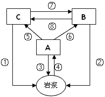2、单选题 读“地壳物质循环简略图示”,图中各数字代表的地质作用,属于沉积和变质作用的编号分别是