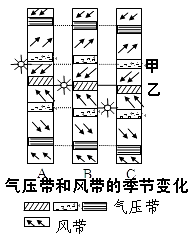 (3)图中气压带和风带:甲是_________________,乙是________________。