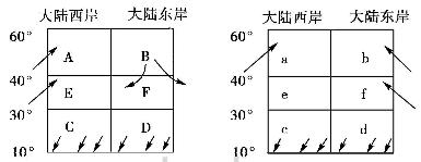 (6)若图中大陆为亚欧大陆,试根据甲、乙两图分析甲图中B地区气候的特点及成因。