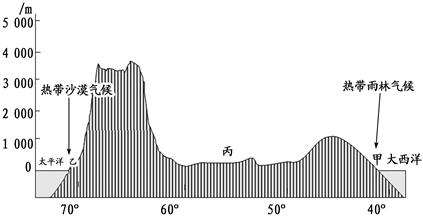 5、单选题 下图为南美洲沿18°S纬线地形剖面示意图,下列叙述正确的是(? )