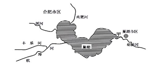 材料一 巢湖上游主要支流发源于大别山区,经巢湖由裕溪河注入长江。巢湖上游较大支流有杭埠河、丰乐河、派河、南淝河等。