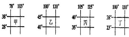 小题1:直接根据图示的经纬度位置可判断相对方位,甲在乙的西南方向;乙在丙的东北面;丙在丁的东北方向,丁在甲的东南面,故D项正确。