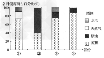 3、单选题 下图是2004年河北、甘肃、四川、黑龙江四省能源生产结构图。读图,回答1~2题。