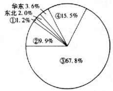 5、单选题 下图表示我国可开发水能资源的地区(按东北、华北、华东、中南、西南、西北划分)分布。参考图,回答1—3题。