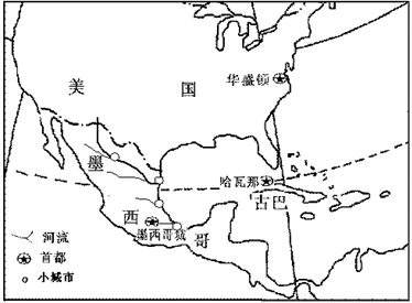材料一:美国、墨西哥和古巴地理位置示意图。