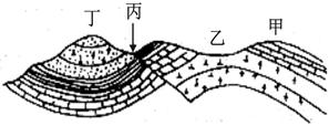 ⑴丁处地质构造名称是         ,地形是            。(2分)