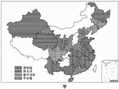 材料一:图甲是我国各区域石油资源平衡类型图。