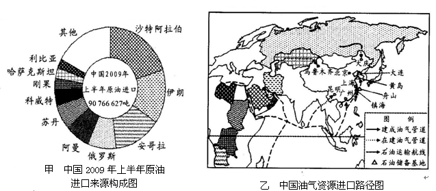 ①由图甲可知,目前我国进口的石油主要来源于中东地区和俄罗斯?