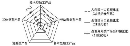 C、劳动密集型产品在世界上的出口竞争力强于技术型加工产品