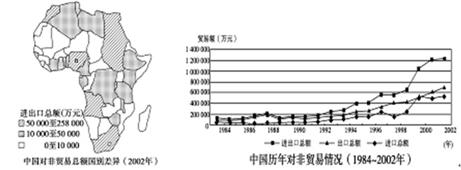 小题1:由图可知,非洲与中国贸易往来最多的国家主要分布在南非和北非以及西非。