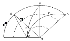 5、综合题 下图为6月22日从北极点上空所见的太阳光照示意图(部分),N为北极点,弧AB、AC、AD皆与极圈相切于A点。