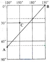 2、单选题 下图为经纬网图。图中A点位于南纬68度AB为晨昏线的一段;此刻,北京处于白昼;近期,C地日出时刻越来越早。据题设条件回答1~2题。