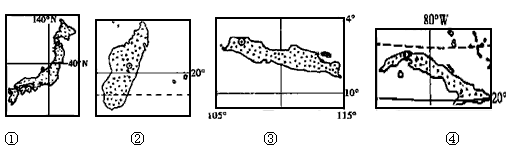 5、单选题 ? 当北京地区座北朝南的房屋内,正午阳光照射面积最大时,下图中各岛正午太阳高度由大到小排列正确的是